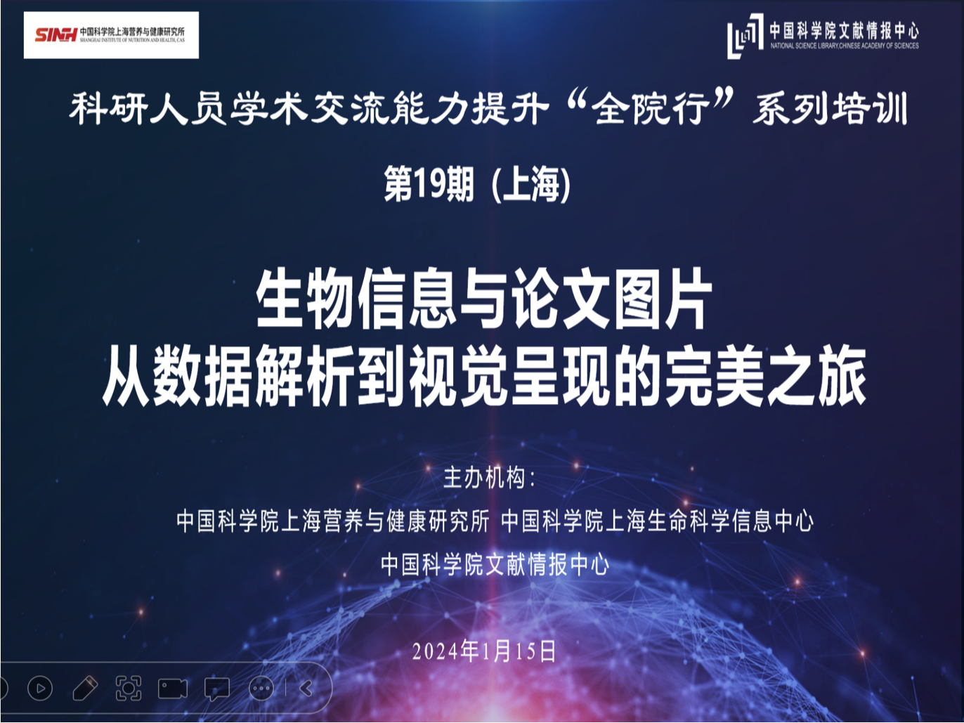 内容简介: 科研人员学术交流能力提升“全院行”系列培训(2024年1月15日) 为帮助科研人员深入了解生物信息工具,熟悉掌握科学论文图片的制作,助力提升科研效能和创新能力,中国科学院上海营养与健康研究所/中国科学院上海生命科学信息中心、中国科学院文献情报中心共同主办讲座活动。本次活动是第19期科研人员学术交流能力提升“全院行”系列培训,欢迎积极报名参与! 第19期(上海) 主题:生物信息与论文图片:从数据解析到视觉呈现的完美之旅 主办:中国科学院上海营养与健康研究所 中国科学院上海生命科学信息中心 中国科学院文献情报中心 时间:2024年1月15日14:00-16:30 活动地点:中国科学院上海生命科学信息中心二楼明德厅(岳阳路319号31A楼) 培训内容 主持人:沈东婧 研究馆员 馆长(中国科学院上海生命科学信息中心) 报告题目 大纲 主讲人 报告1 利用生物信息工具,提升科学研究效能 1. 生物信息学的发展和影响 2. 常用生物信息数据库和工具 3. 有效正确地利用生物信息工具 李虹 研究员 博士生导师 中国科学院上海营养与健康研究所 报告2:塑造视觉语言:科学论文图片的精心策划与呈现 1. 论文图片制作的五大元素 2. 论文中不同类型图片制作要点 3. 论文示意图绘制实例解析 李叶菲 副研究员 常务副主任 中国科学院脑科学与智能技术卓越创新中心 Neuroscience Bulletin编辑部 主讲人: 李虹 中国科学院上海营养与健康研究所研究员,博士生导师,中国科学院青年创新促进会会员。主要研究领域为生物信息学和系统生物学,近几年致力于中国特有高发肿瘤的组学数据智能分析、基因组进化和精准用药研究,取得了显著的研究成绩。以第一作者或通讯作者发表SCI论文27 篇,参与发表SCI论文26篇,获软件著作权5项。曾获上海市自然科学奖一等奖(第四参与人)、赛诺菲-中国科学院上海生命科学研究院优秀青年人才奖。主持国家自然科学基金面上项目、国家自然科学基金青年项目、上海市科学技术委员会“扬帆计划”等。 李叶菲 博士,Neuroscience Bulletin编辑部常务副主任,毕业于原中国科学院神经科学研究所,师从段树民院士,2013年获得博士学位后任职于Neuroscience Bulletin 编辑部担任科学编辑。2017年加入施普林格·自然出版集团,任医学和生命科学方向高级期刊出版编辑。2022年3月加入Frontiers出版社担任脑科学组出版总监。2023年6月起担任Neuroscience Bulletin编辑部常务副主任。李博士在科技论文写作、论文排版制图,文章审稿发表,期刊运作发展等方面具有丰富经验。