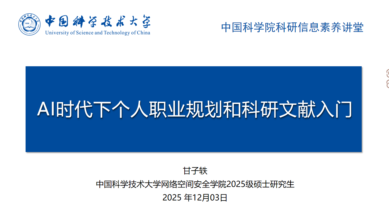 甘子轶,中国科学技术大学网络空间安全学院2025级硕士研究生,主要从事大模型安全(模型幻觉、隐私保护、jailbreak)相关研究,参与使用自主编写的改进SM2、SM9算法项目获得全国密码技术竞赛国家三等奖,拥有1项个人原创软件著作权(第一完成人)。