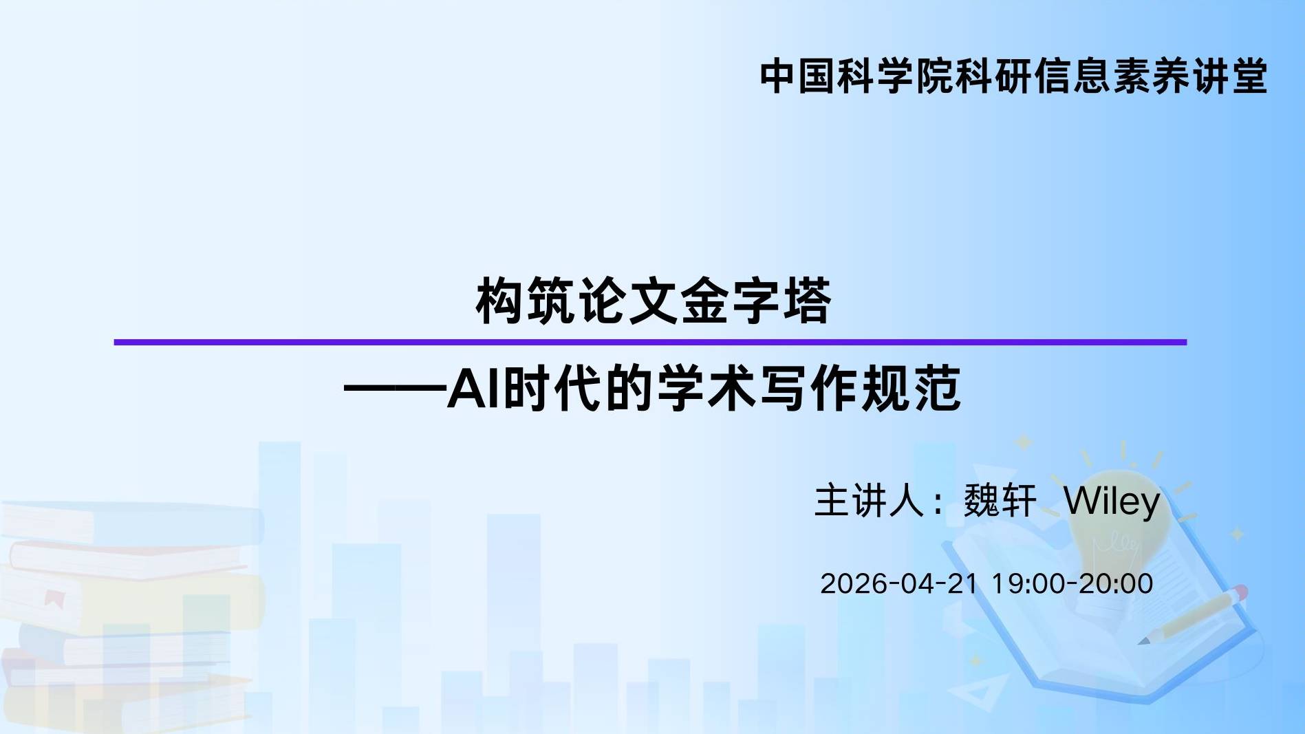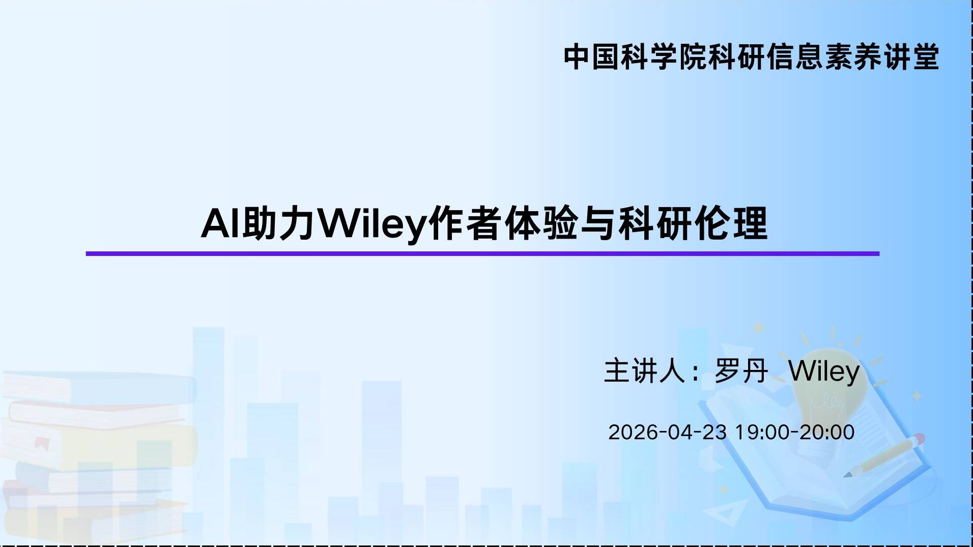 讲座大纲:1. 如何在科研写作中选择最适合你的AI工具2. 科研,写作中AI使用的最佳实践3. 如何在论文写作及发表过程中正确披露AI情况主讲人:魏轩博士,Wiley学术顾问魏轩博士2011-2019年于英国雷丁大学(University of Reading)获食品工程本科学士学位,食品与营养科学博士学位。先后于英国雷丁大学、上海交通大学任科研助理、博士后等职位。曾长期担任Flavour and Fragrance Journal, Food Chemistry, Journal of Agriculture and Food Chemistry, Food Science and Human Wellness 等国际知名学术期刊审稿人,在科技论文写作与发表上有丰富经验。